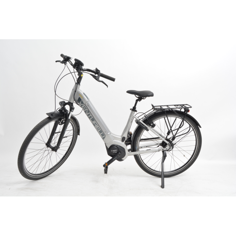 Deftige elektrische stadsfiets met hydraulische velgremmen.